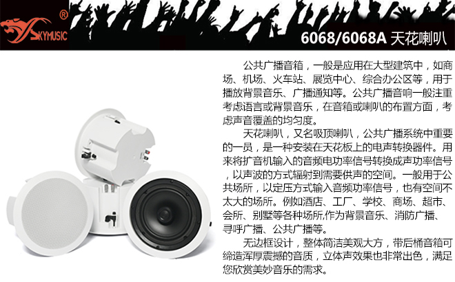 公共广播 - 天花喇叭 - 6068/6068A天花喇叭8寸60瓦