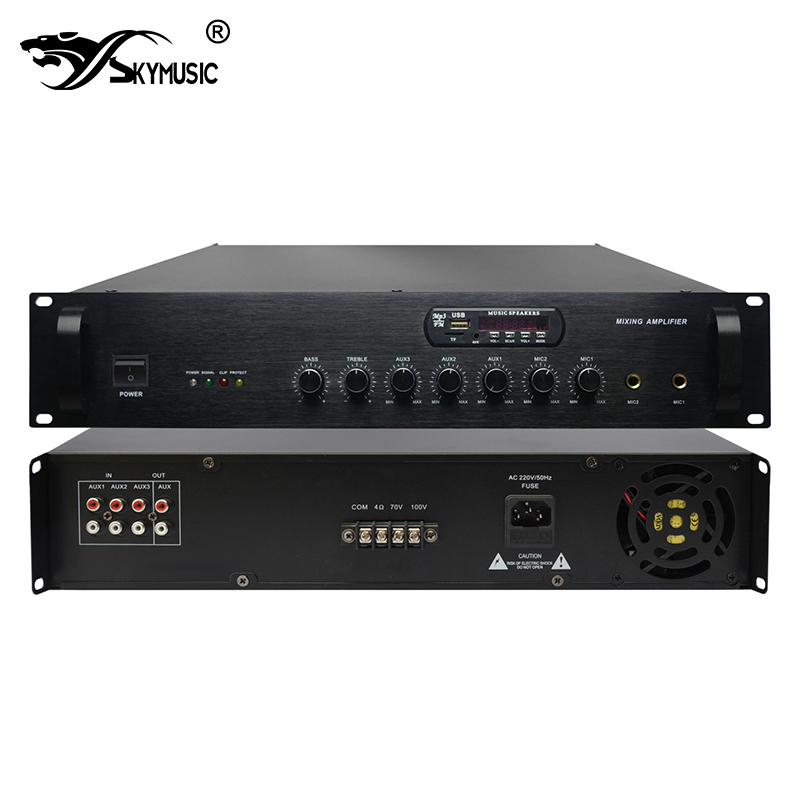 2、采用先进高效功率放大电路,设有2路话筒输入,3路线路输入,1路辅助输出;