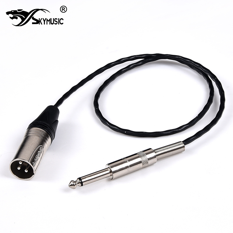 将线材的6.35mm端子插入电吉他、电贝司、电箱吉他等音频输出设备对应接口,另一端卡侬公端子插头插入专业调音台、专业音箱、功放机、电容音箱等输入设备的对应插座即可。