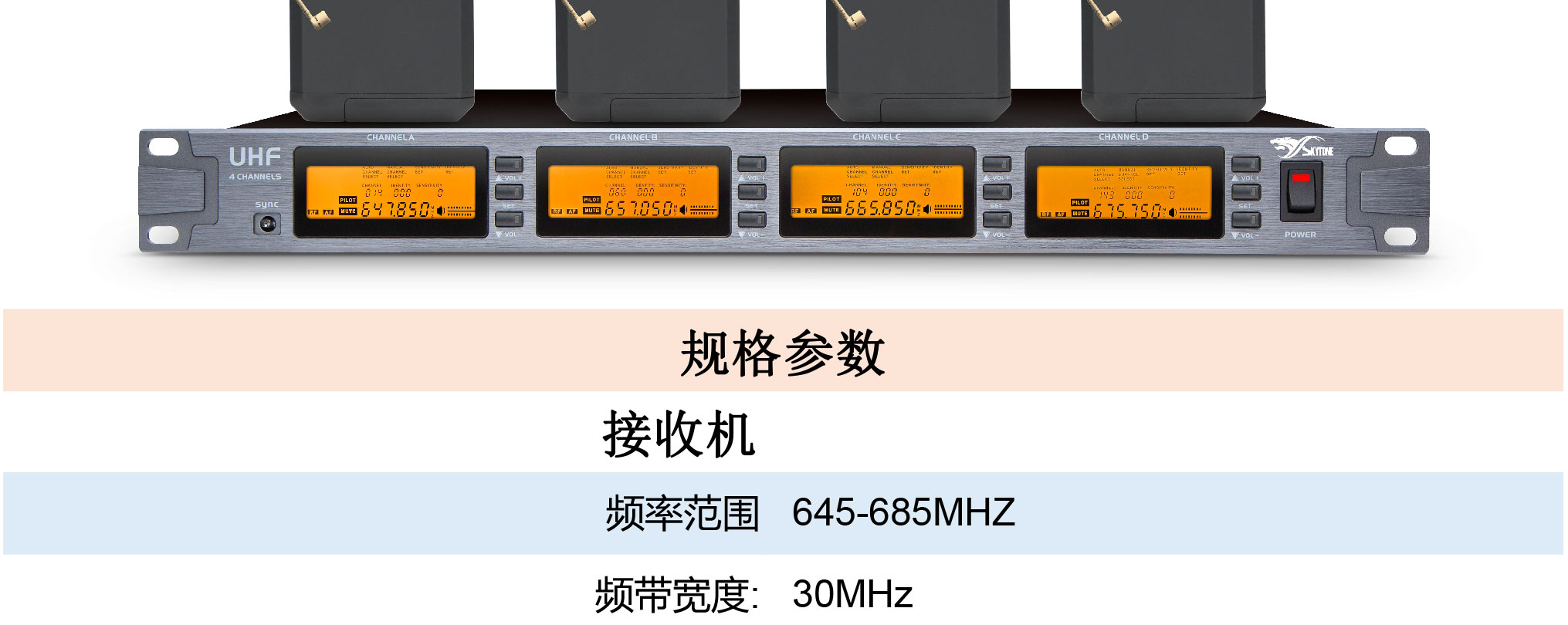 ■ 载波频段:UHF635~685MHz